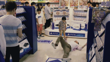 还有在《勇者斗恶龙Ⅺ》宣传中,一秒开启神烦小朋友模式,在地上打滚吵着要买游戏。