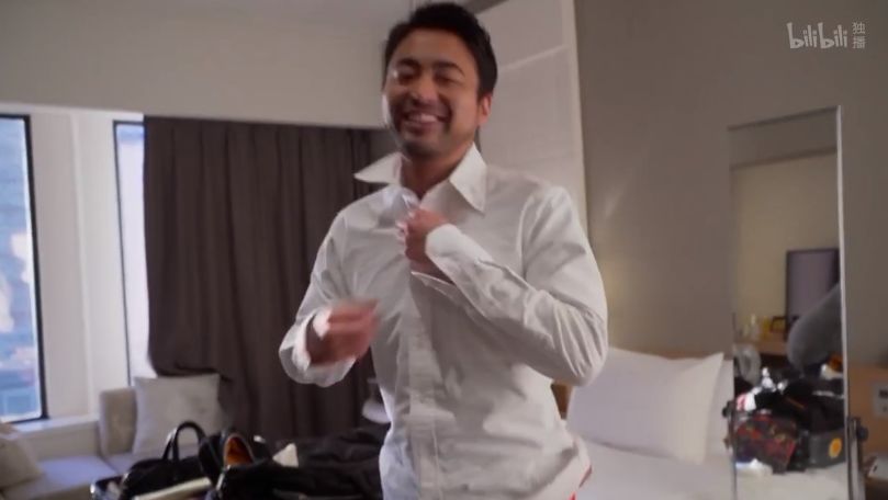 一片掌声中,他微微弯腰向大家点头示意,稳重而内敛。