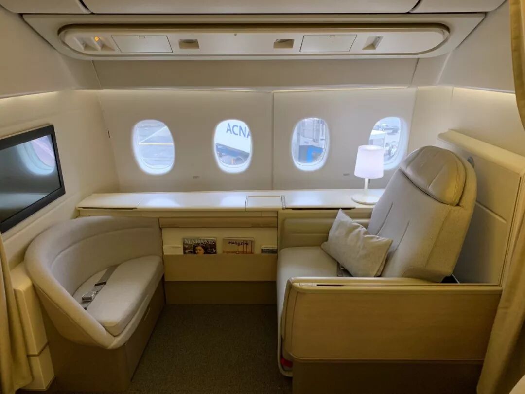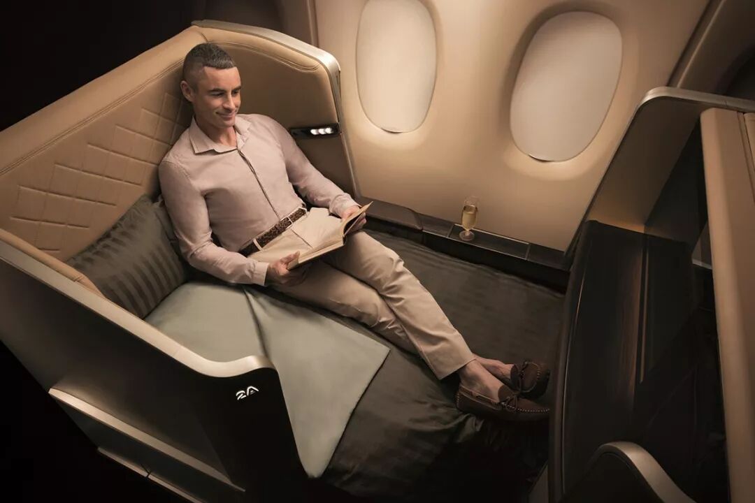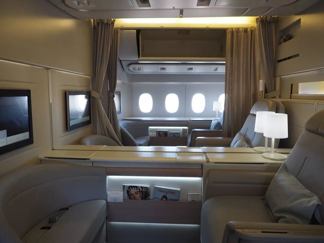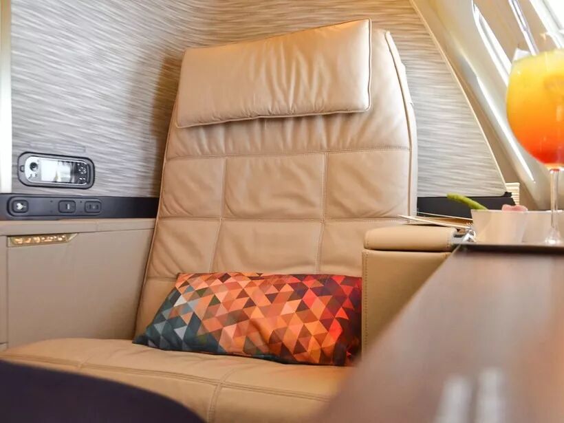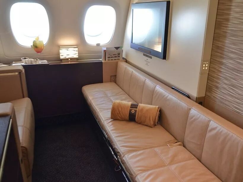 新加坡航空的空客 A380 客机配备具有“空中套房”之称的头等舱,室内设计由法国豪华游艇设计师 Jean-Jacques Coste 打造,其中的座椅是由意大利工匠 Poltrona Frau 手工缝制的豪华柔软皮革扶手椅,还有一张可以平躺的宽敞单人床。