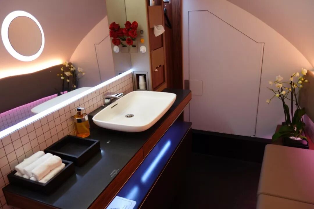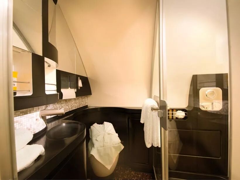 值得一提的是,阿提哈德航空的 A380 客机可以满足乘客在万米高空洗澡的梦想。你可以在淋浴间里充分利用足够持续五分钟的水量,使用 Le Labo 的沐浴产品唤醒一天的好精神。