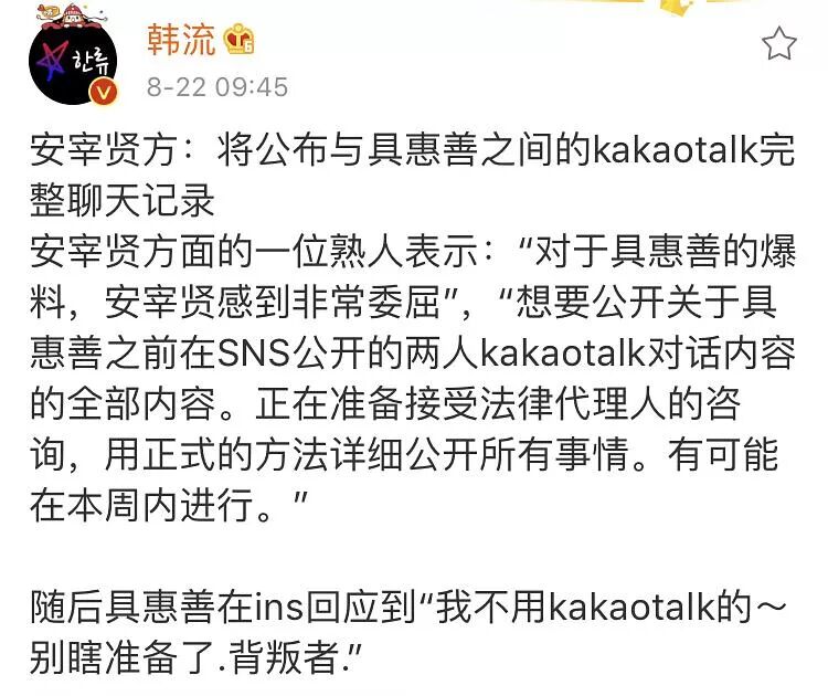 - 编辑:短腿总裁 安宰贤和具惠善的离婚新闻,没有十天半个月可能完结不了。 昨晚,安宰贤安静四天以后,终于发了长文回应。 他的声明很长,我直接给大家总结重点: 1. 因为爱情结婚,想要安静结束婚姻 2.