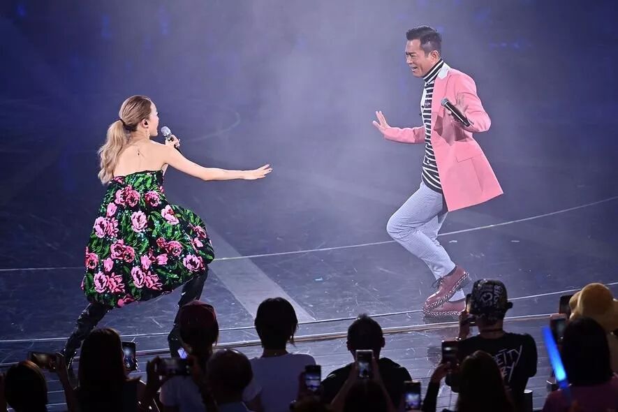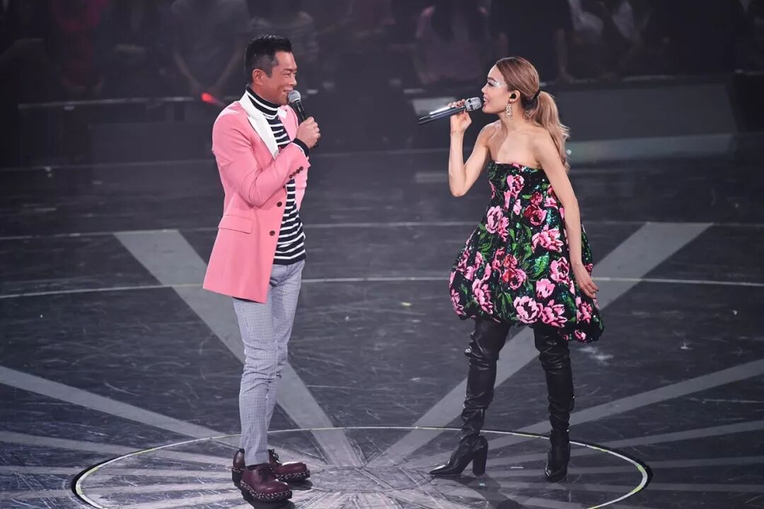 古天乐抱恙为容祖儿演唱会任嘉宾,非常有义气。他破天荒现场演绎《今期流行》,还大跳经典拜神舞。