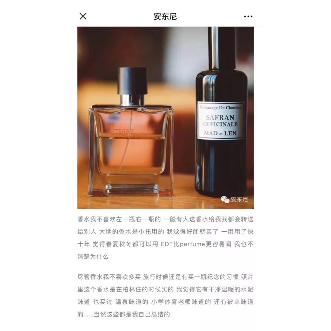 “爱马仕的大地…… 因为人生第一次觉得有好感的香味就是这款。之后在人群里如果偶然闻到,就很舒服。”