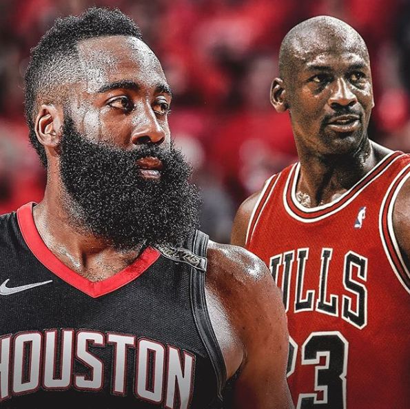 "哈登是联盟2017-18赛季的MVP和两届得分王,自2013-14赛季以来每个赛季的场均得分都有所提高,上赛季他的得分达到了36.1分。乔丹,10次得分王,五次MVP,在NBA的15个赛季中有8次平均得分超过30分。"
