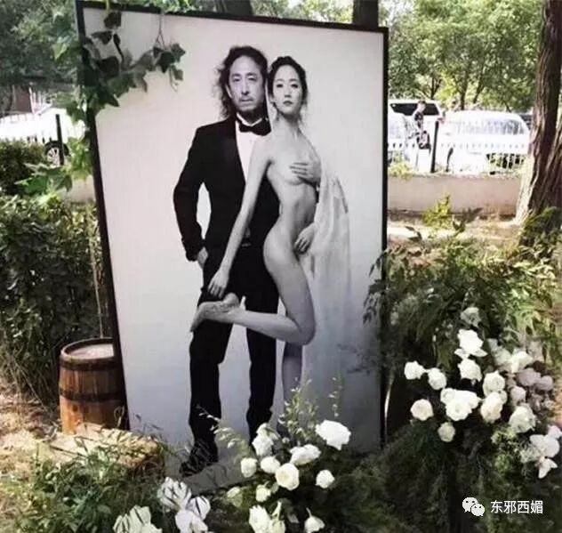 就像著名音乐人三宝的结婚照,自己衣冠楚楚,一手掌握着妻子年轻的裸体。这是忍不住要向全世界炫耀吧:看我找了个多鲜嫩的媳妇!