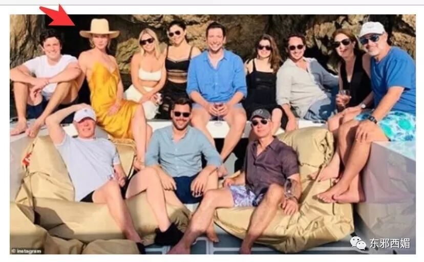 他晒出的度假富豪合照上,有好莱坞巨头船主、高盛CEO、霉霉经纪人,有趣的是其中还有超模小KK夫妻——小KK老公是伊万卡的小叔子,而贝佐斯和特朗普是死对头。
