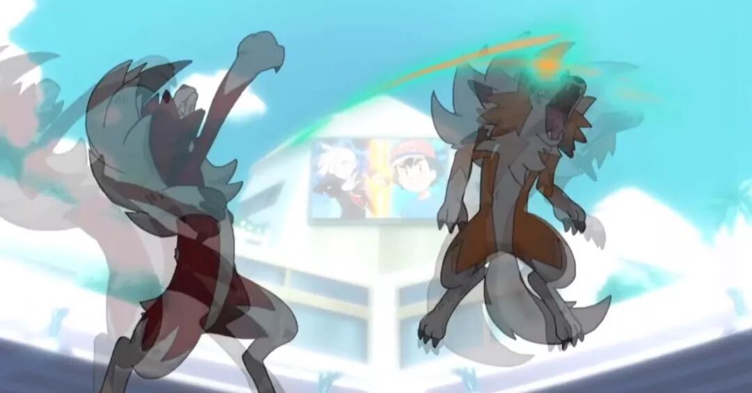 在3v3的对决中,双方先是打成平手,到了决胜局,双方都派出了鬃岩狼人(不同形态),小智一直处于下风,最后以一招搏命的双倍奉还将对手振飞出场,以3比2取得了胜利。