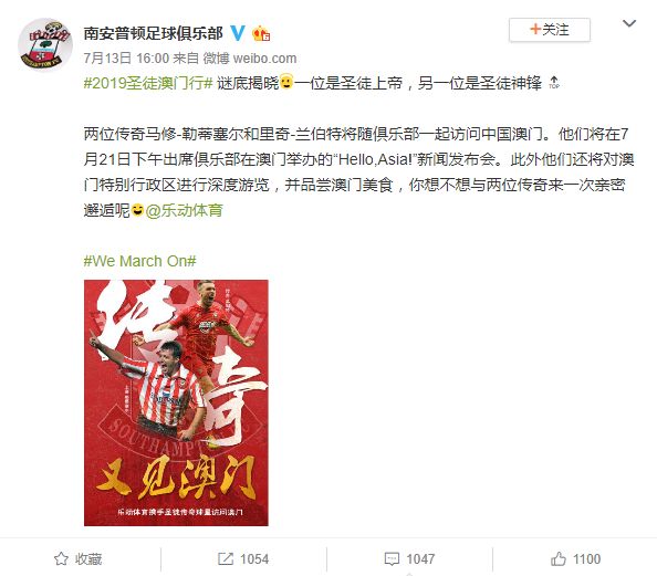 在南安普顿中国行期间,社媒推出了大量相关策划,两位传奇马修-勒蒂塞尔和里奇-兰伯特将随俱乐部一起访问中国澳门。