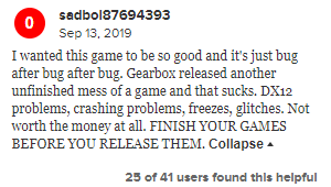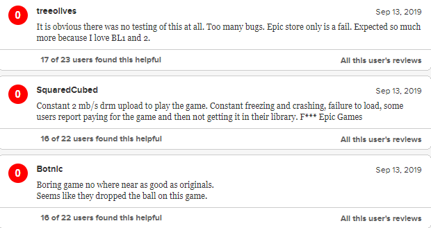 还有Gearbox祖传的各种bug和兼容性问题引发的差评,在评论区都能找到。