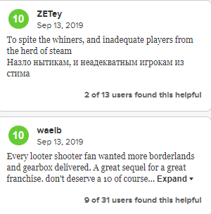 而觉得好玩的玩家则是和主流媒体差不多的态度,认为Gearbox找到了玩家们的核心需求,大家要的就是这个。