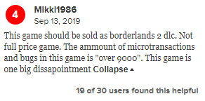 当然,也有一些不一样的差评,比如有人觉得这就是《无主之地2》的一个大型DLC,不能作为一个单独的续作。