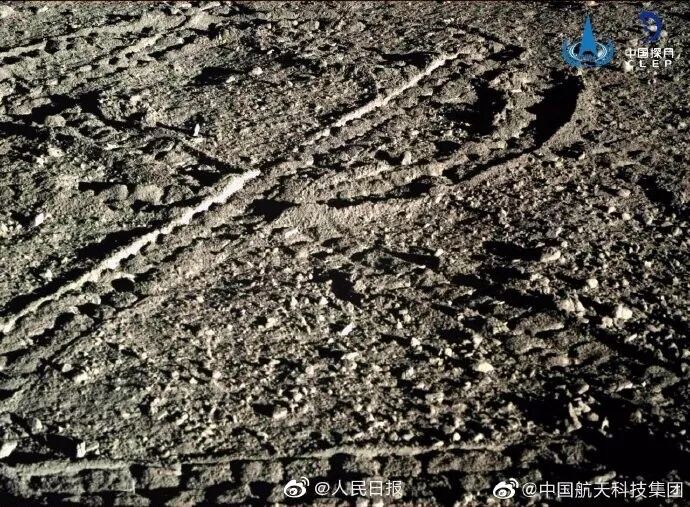 而且今年的月亮上,还有玉兔二号送给大家的月饼呢。昨天,中国航天科技集团在网上发布了一张“玉兔二号”在月球上行驶轨迹的照片,一个正圆的行驶轨迹就是一个圆圆的月饼啦。