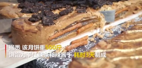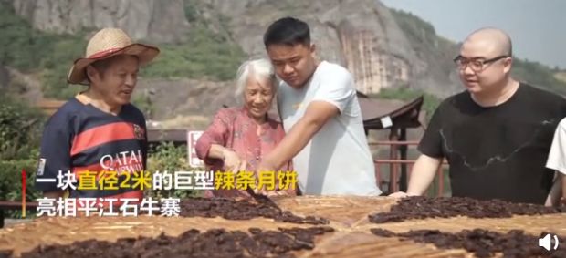 巨型辣条月饼来一个~在湖南平江县,一块直径2米的巨型辣条月饼横空出世↓