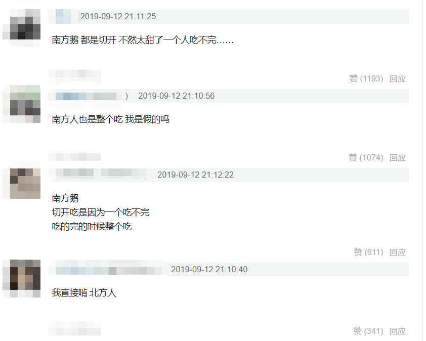 看着投票和评论,鹅妹觉得到底是切开吃还是整个吃虽然大致南北有有一丝不同,但也都是个人习惯选择。