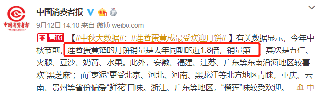 不仅我们广大网友来争论哪种口味最好吃,中国消费者报也做了相关的数据调查,今年中秋节莲蓉蛋黄馅月饼荣升最受欢迎月饼首位,销量也是去年同期的近1.8倍。不错,蛋黄党取得了阶段性的胜利(^-^)V