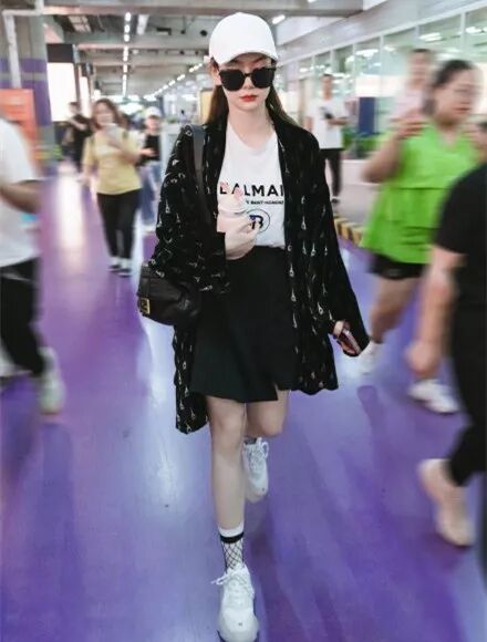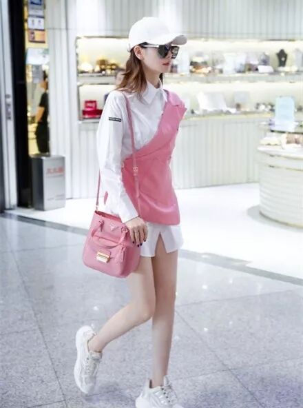 最近她还穿了件蜜桃粉色不规则设计感西装现身机场,时髦率性气场全开,手袋颜色还与服装相呼应,太会搭了!