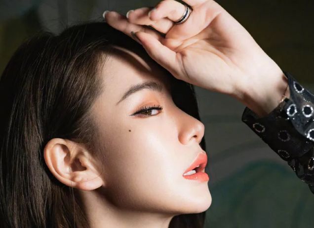 她出的泪痣妆,柳叶眼线加泪痣,妩媚又英气,复古又高级。