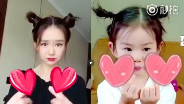 还有不畏惧年龄,大胆尝试的哪吒头,和女儿lucky简直一毛一样。
