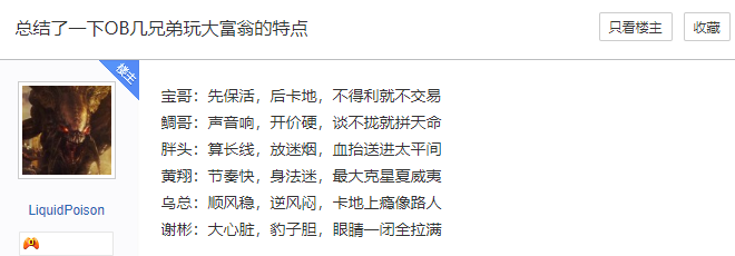 毕竟他们是职业选手出身,论好胜心,肯定谁都不服谁。性格使然,有贴吧网友还总结出了几兄弟玩大富翁时不同的特点。