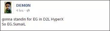 很多人可能不知道,“EG.SumaiL”是Sumail的第二个ID,取自他的本名。早期他在各种网吧赛当枪的时候,ID叫:“D3M0N”(注意是数字的0,原版DeMoN也是一位远古刀塔大神)