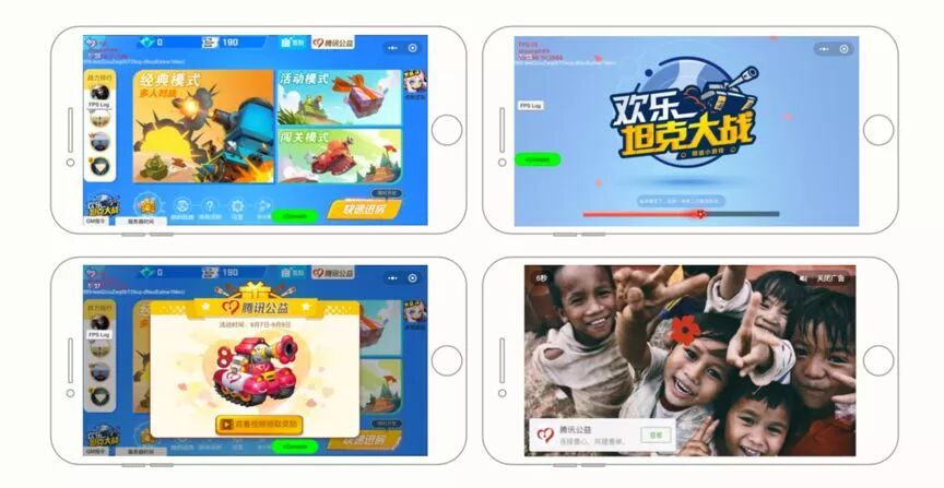 在去年99公益日期间,当玩家打开欢乐坦克大战小游戏,俨然发现进度条都变成小红花样式——腾讯公益的首个IP形象,感到惊喜的用户可以直接点击查看公益宣传视频,并获得品牌定制的坦克皮肤。