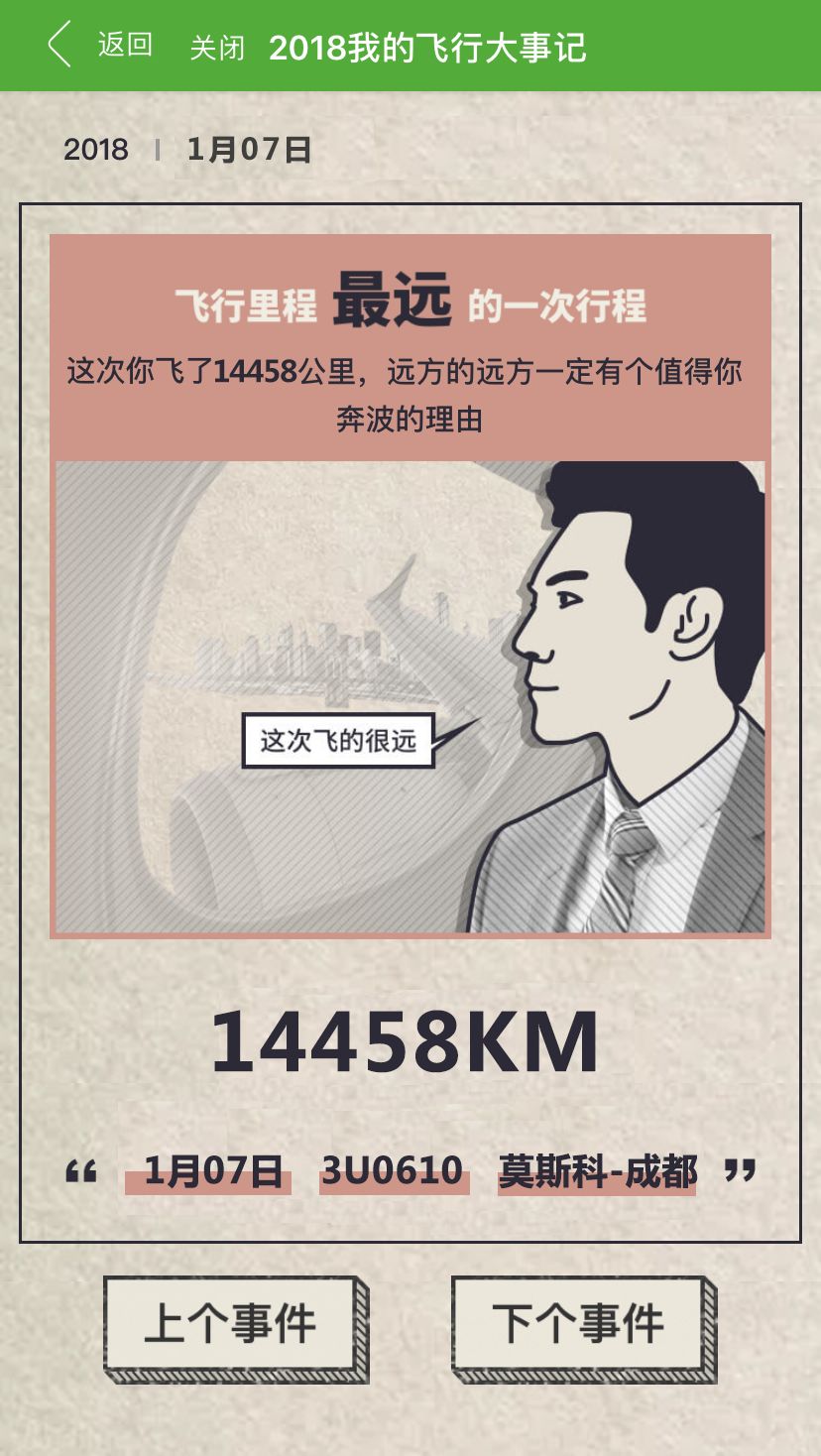 1月07日: 3U0610 莫斯科到成都 14458公里。