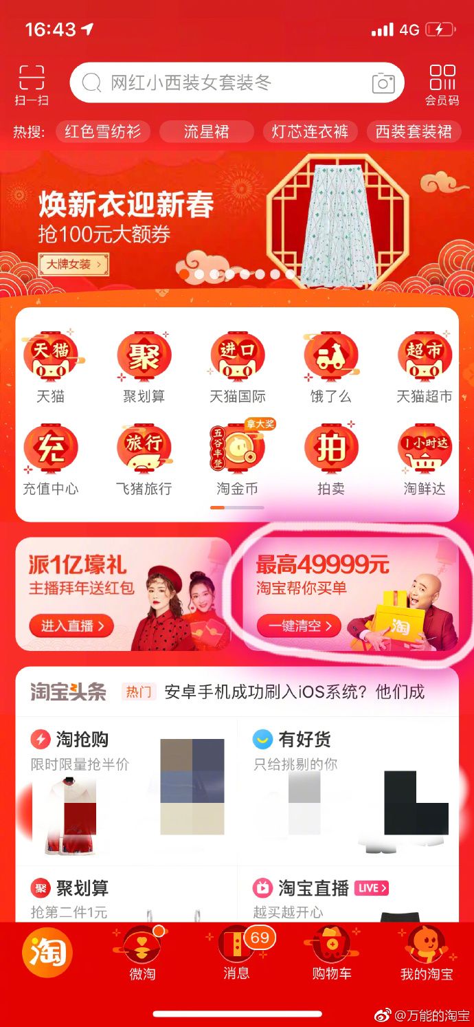 - 1分钟花掉100万 ?淘宝春节爆出“清空购物车”大彩蛋!