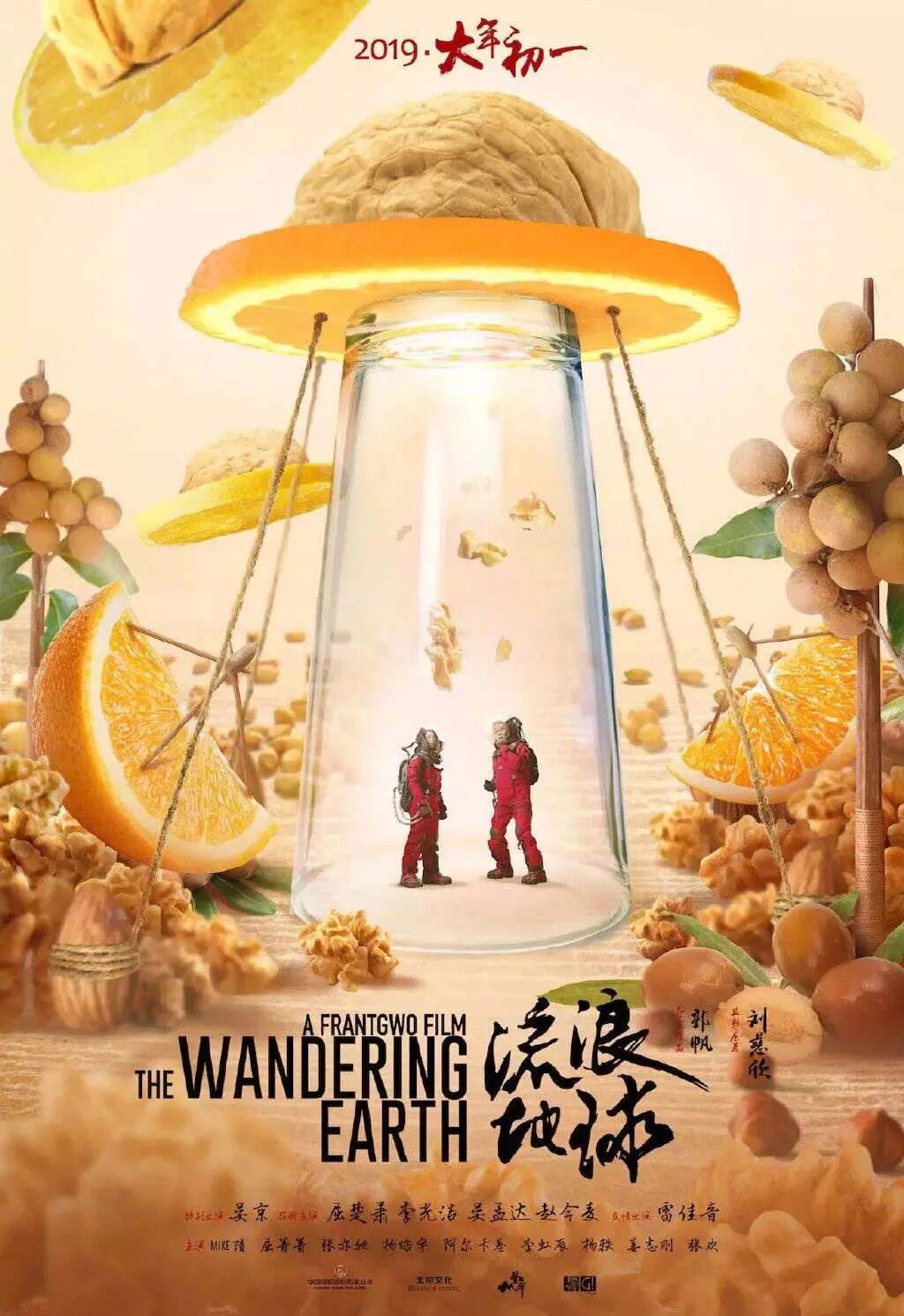第四幅则有一个让我忍俊不禁的细节设计,海报中核桃和橙子组成的UFO所发出的“光束”,竟然是一个倒扣的杯子,不仔细看差点就错过了。