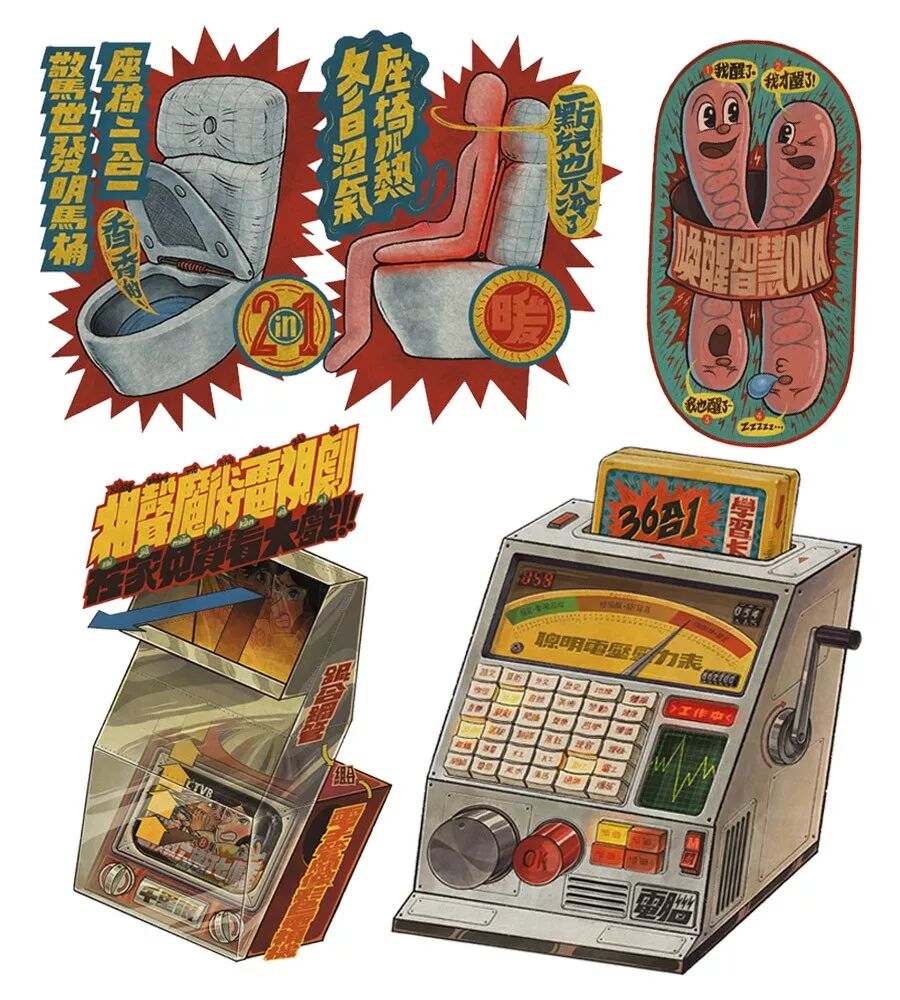 “辞旧迎新”是每年春节永恒的主题,对于技能冷却(COOLDOWN)来说“辞旧迎新”最好的方式莫过于以一种复古未来主义的气质,用经典的旧形式做出别样的新趣味。下面这套系列海报被起名为“复古未来主义商店”,每一幅都对应一句四字祝福,每幅细节丰富的海报主体都是一个并不存在的无聊发明,愿这些美好的祝福和有趣的脑洞能给大家带来更润滑、高级、持久的欢乐。