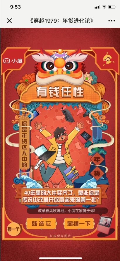 配合百度在微博掀起的“小度年货节”声浪,一则《穿越1979:年货进化论》的H5,几乎同时在朋友圈里刷屏了。