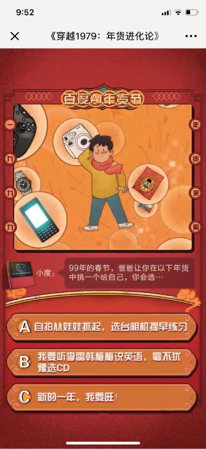 因此,“年货进化论”H5作为百度在这一营销策略下的宣传出口,就具有特别的意义。