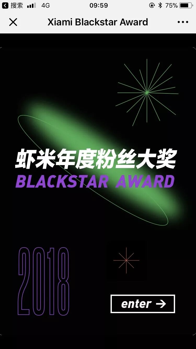 打开活动页面才发现,虾米年度粉丝大奖BLACKSTAR AWARD是虾米音乐为感谢2018年度表现突出的优质用户,精心策划的粉丝颁奖礼,作为虾米2018#年终特别策划#的压轴,还是有不少“新意”的。