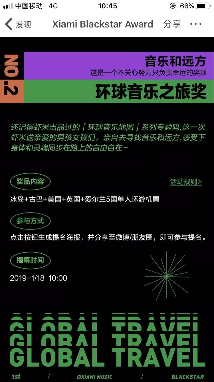 这两天打开虾米音乐APP,无意发现首页推荐有一个#虾米年度粉丝大奖BLACKSTAR AWARD#的活动。独特的名字,加上前卫的视觉设计,再配合首页底部的行星运转icon,让人由不得想点击。