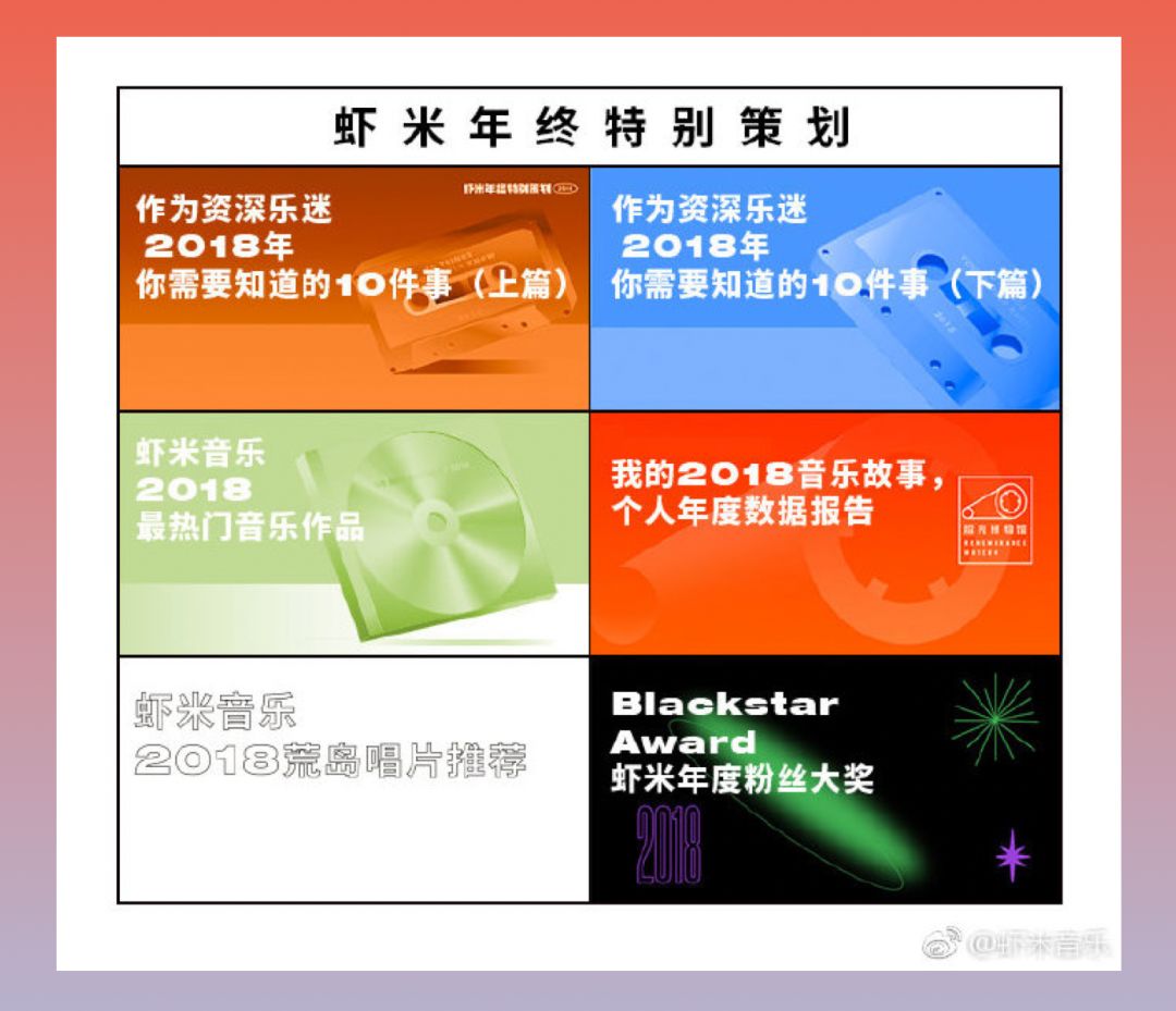 而顺着#虾米年度粉丝大奖#往前倒推,会发现虾米的#2018虾米年终特别策划#内容丰富,时间跨度大。