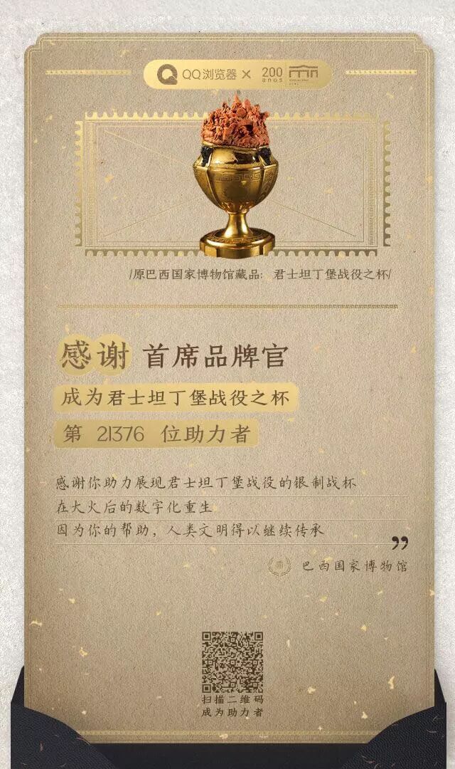 在这过程中,巴西博物馆所承载的传统文化被更多国人所感知,同时也赋予了QQ浏览器和腾讯博物官自身人文化的品牌形象,使品牌信息的输出更加温和而不失力量。