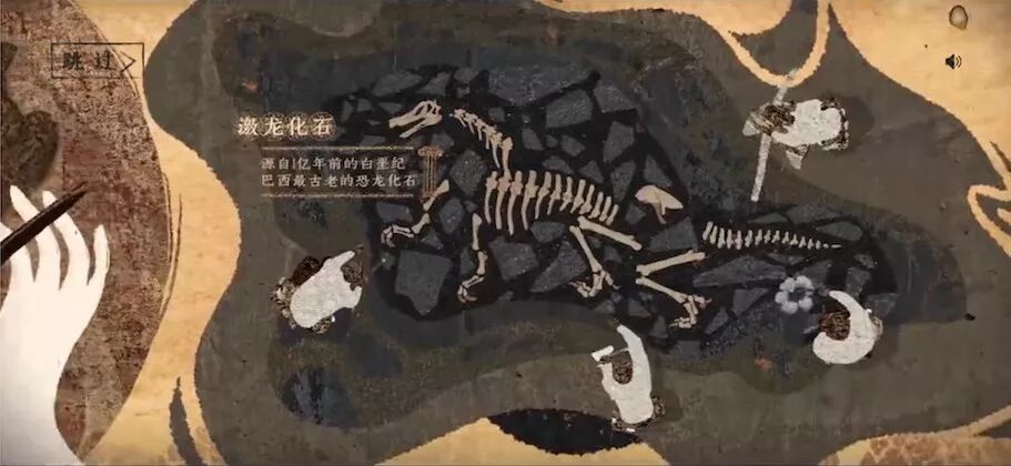 这支H5并没有沿用传统文化题材的设计风格,而是用扁平化的视觉呈现,来契合当下观众的审美习惯。以一个化石的前世今生为主要线索,通过时间逻辑完整地呈现这具恐龙化石从活体演变为尘封多年的化石,并最终陈列在博物馆当中的过程。