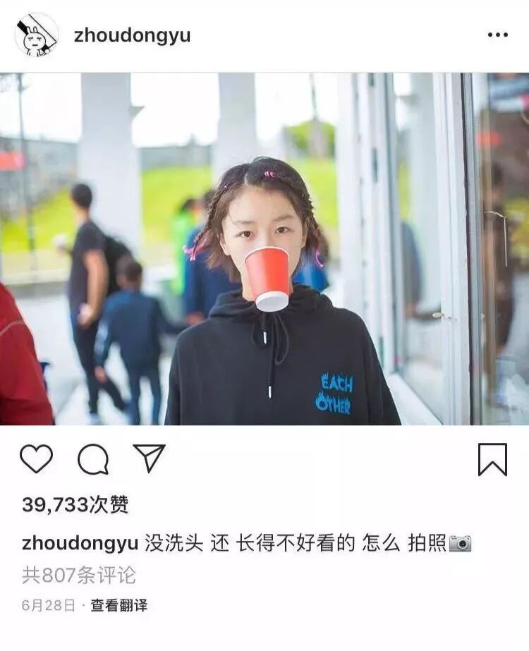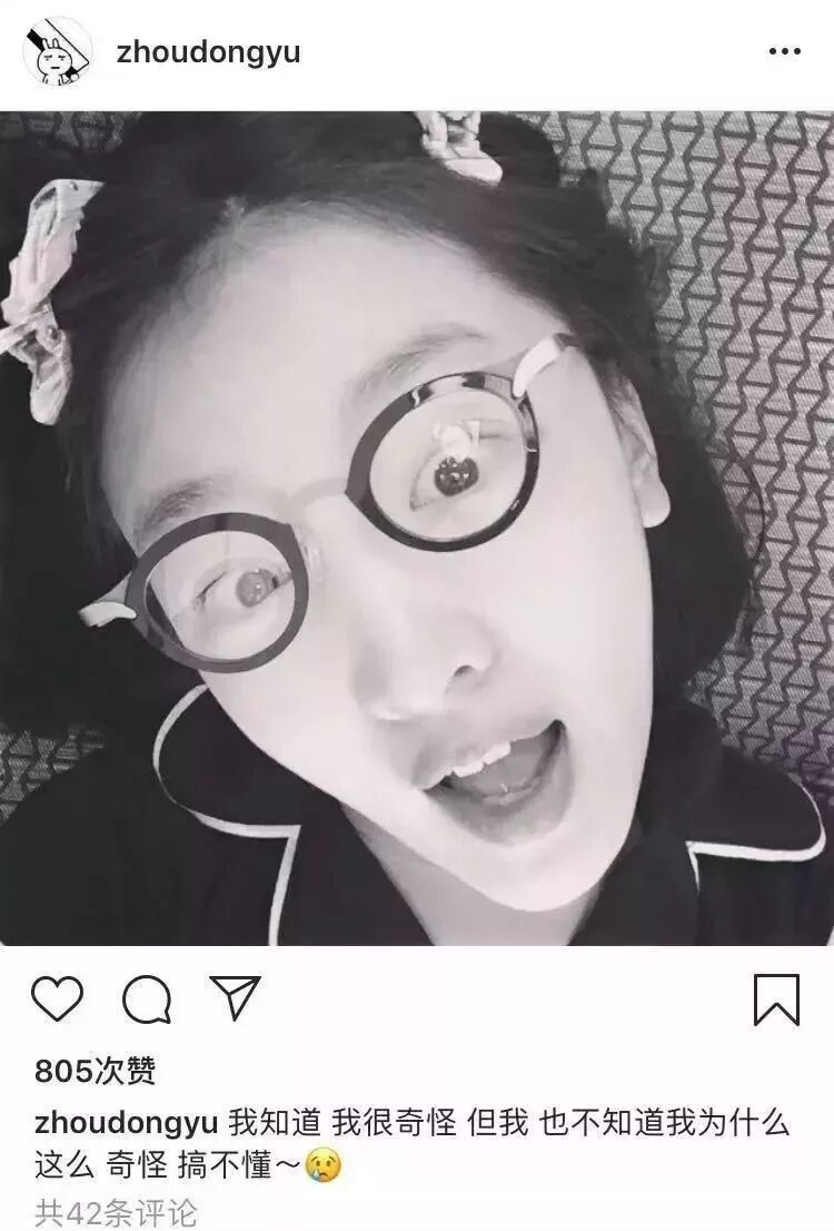 第四位登场的是周冬雨,看周冬雨日常微博,蛮搞笑,也挺放得开的。