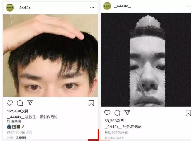 像易烊千玺这样,是把帅照留给微博粉丝,“丑”照自己ins放飞,而接下来登场的这样完全相反。他微博的画风是这样——