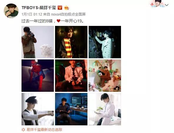 第二位登场的是大家喜欢的四字弟弟——易烊千玺,纵观他微博日常画风,都是这样的。