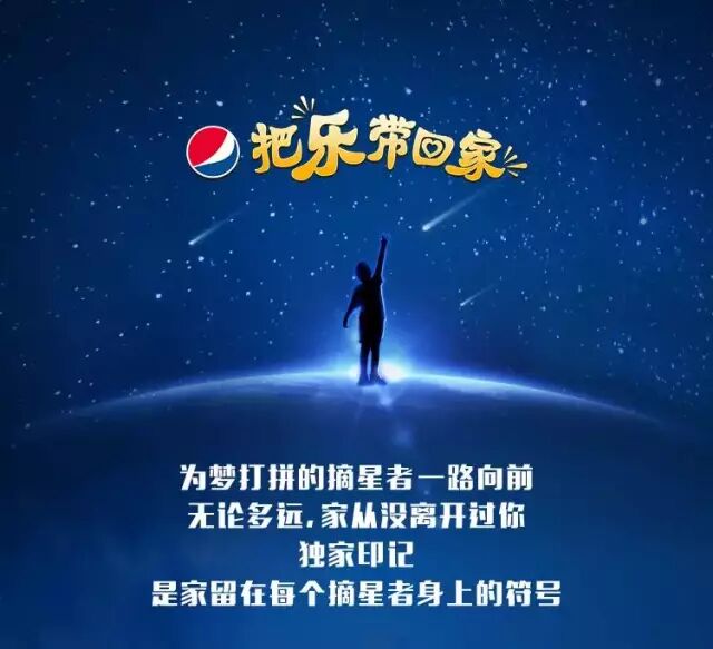 今年百事把镜头对准了外太空,内容也很有看头,将地上的团圆变成肾上腺素飙升又动人的冒险——“我要出趟远门,为你摘颗星星回来。”