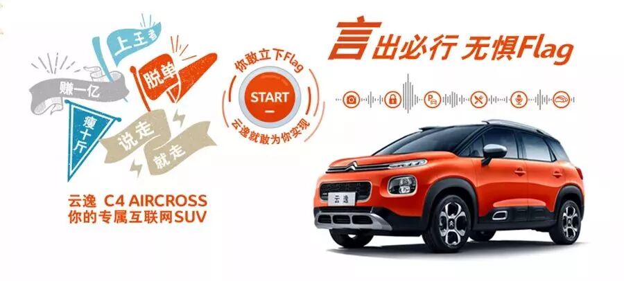 新年来临之际,许多品牌会借此契机抓住与用户沟通的机会,最近,东风雪铁龙品牌旗下车型云逸C4 AIRCROSS,在社交圈发起了“言出必行,无惧Flag”行动,一场大规模有趣的活动让年轻人千呼百应,热血沸腾,为2019年梦想启程点了第一把火。