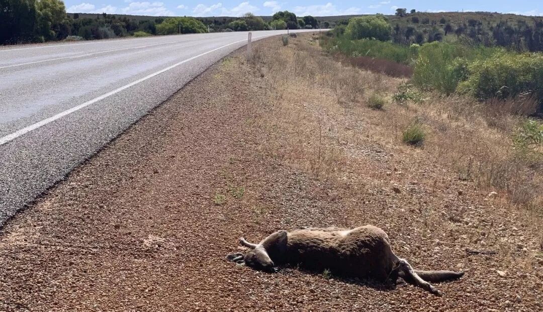 路边被撞死的袋鼠,很可怜。澳洲有规定,路上撞到动物不算违法违规也不罚钱,但是车主要么下车把动物拖到路边,要么自己带走,反正不能留在路中间,很危险。(视频中有袋鼠过马路的片段)