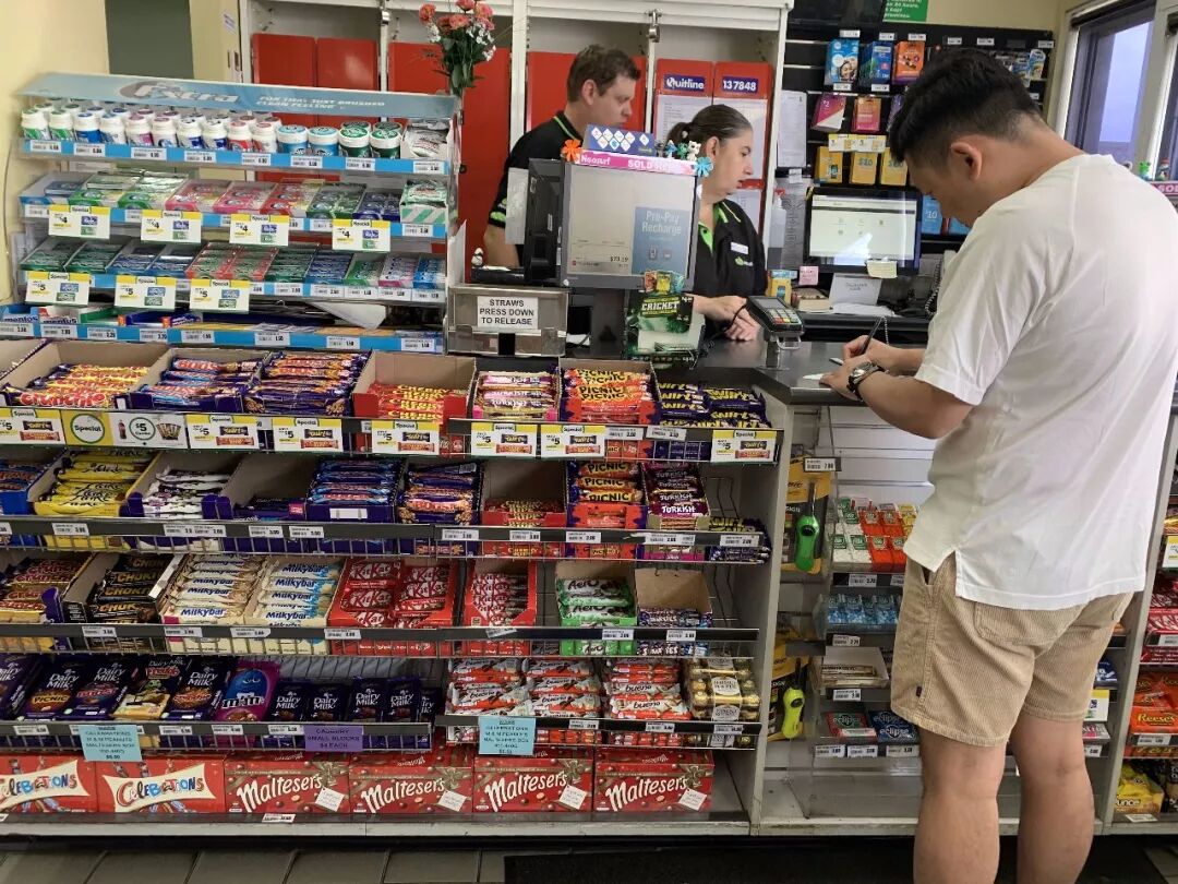 一般加油站都是自主加油,直接插枪加油,加完了就去便利店付钱就好。(瞧这一货架的巧克力棒…能不胖吗?)