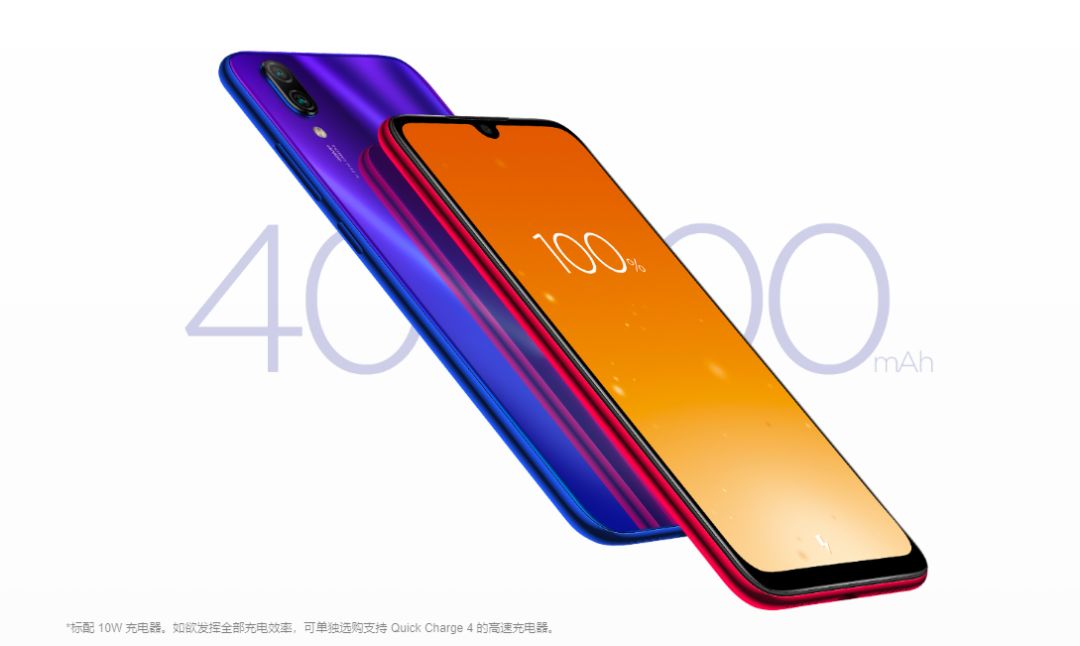 超大的电池,超长的续航,超快的充电。红米Note 7采用配备新型石墨负极的4000mAh大电池,如此大电量已经是妥妥的商务旗舰配置,让你告别电量焦虑。支持QC 4协议,在小米商城购买新机时可加10元选购18W小米USB充电器快充版,实测1小时43分钟充满。