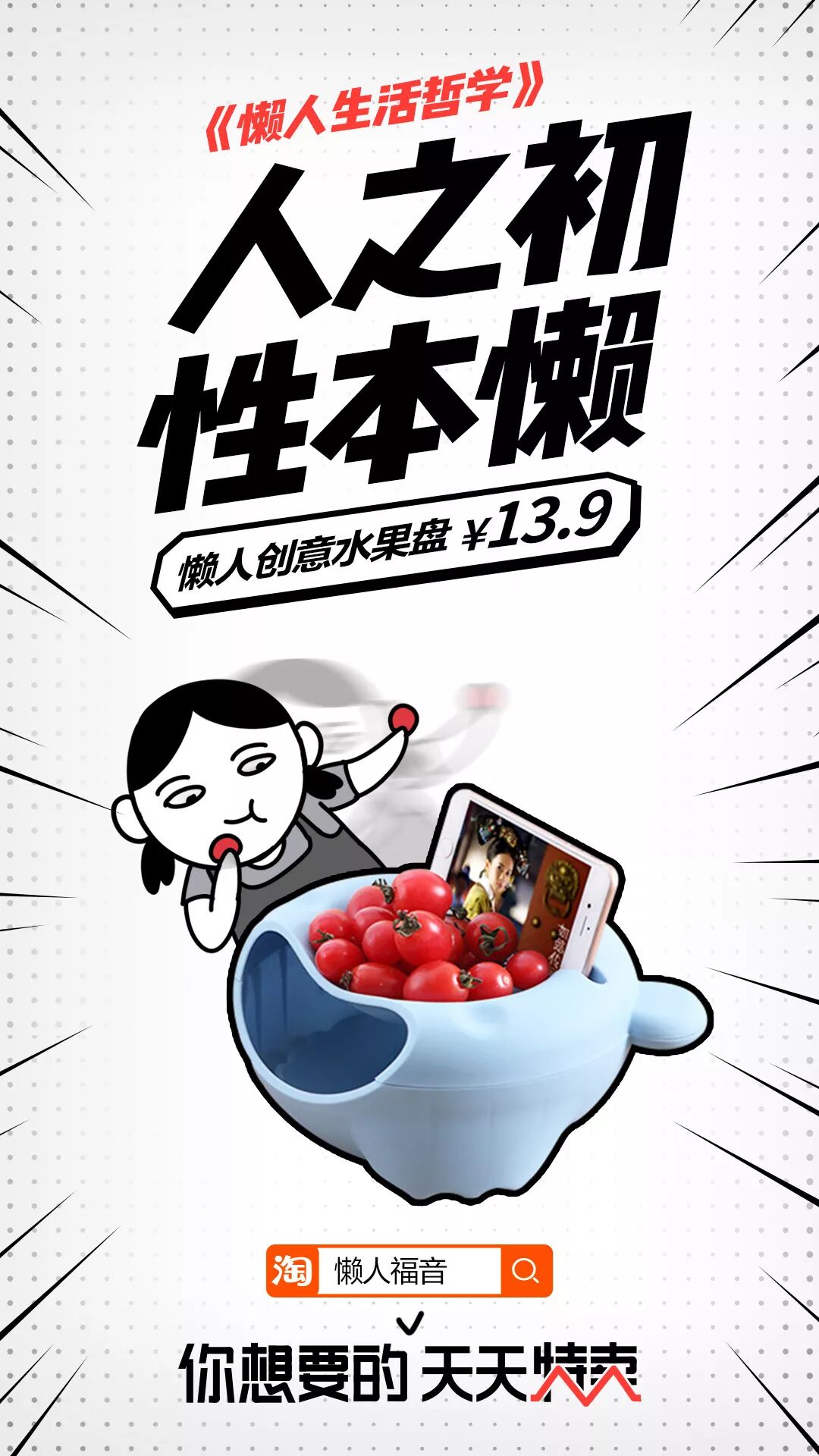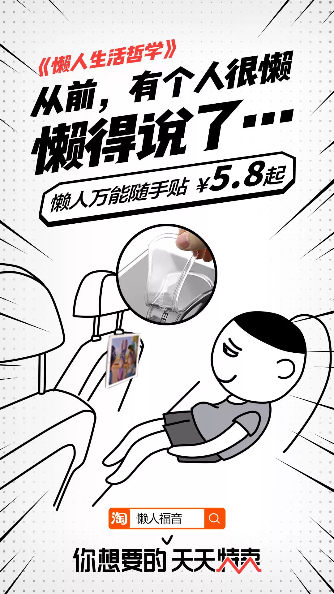 「懒人生活哲学」:专注网友吐槽懒癌的痛点,用文案包装懒癌神器,传递懒人的生活态度。