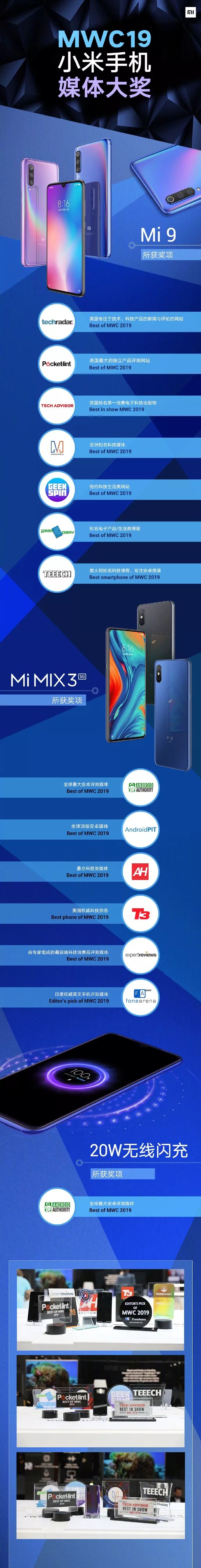 MWC19,小米9和小米MIX3 5G版全球发布,获得诸多海外媒体的一致赞誉,全球首款的20W无线闪充黑科技,更是受到追捧!感谢肯定,小米会坚持做感动人心、价格厚道的好产品,继续加油!
