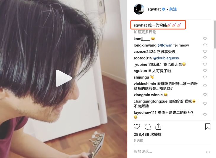 结果不一会,老公冯德伦就深情款款自弹自唱《分分钟需要你》哄喵开心~献唱对象竟然不是自己的老婆,果然po出女友视角视频的舒淇酸溜溜的配文“唯一的粉丝”。