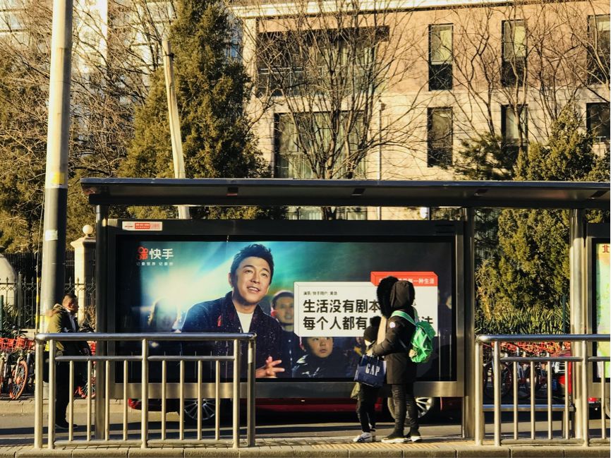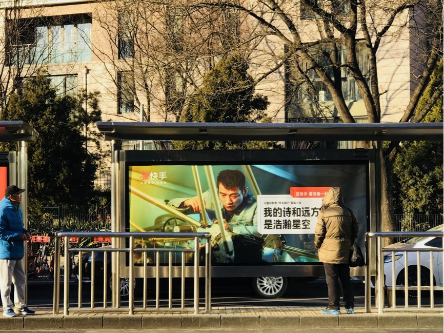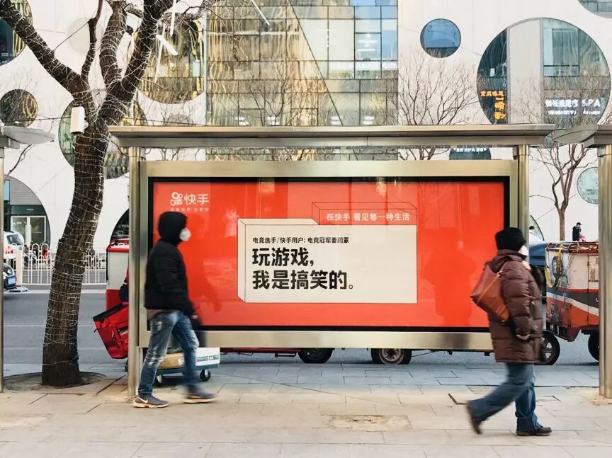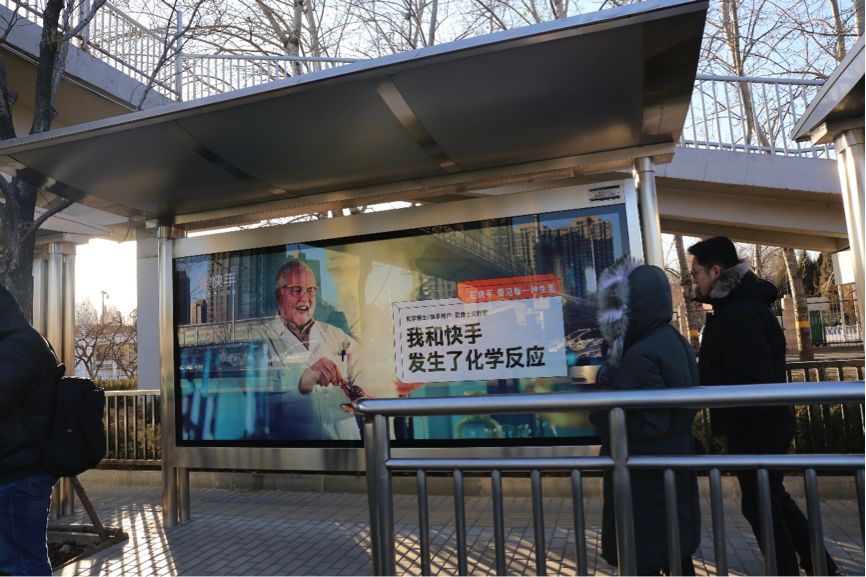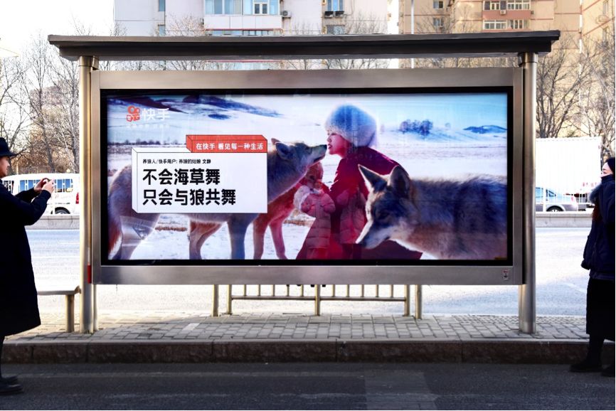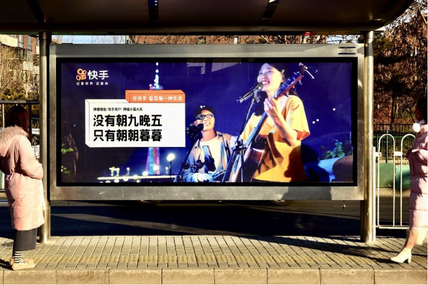 100种人生是快手的坚持。快手邀请著名摄影师:周裕隆&牛思源,为100位来自快手世界的普通用户制作了“看见每一种生活”系列KV。承包了北京全城站牌进行风暴投放。