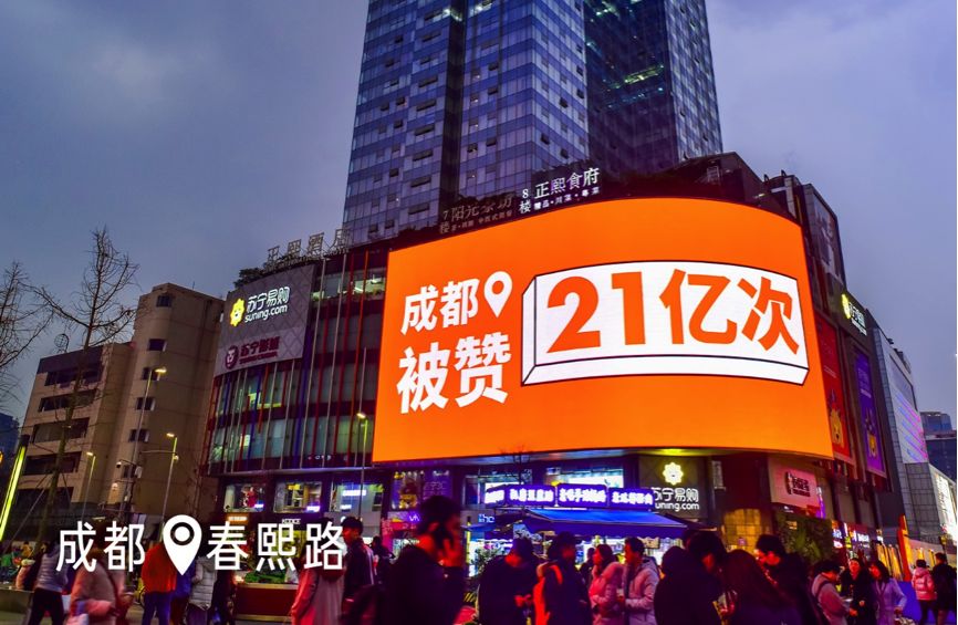快手这波点赞广告依据当地语言特色,用一句“接地气”的鼓励,用极具亲切感的话语,拉近与当地用户的距离。北京的你看到的是一句“倍儿棒”、成都的你是“巴适得很”、广州的你看到的是“猴赛雷”……此外,广告的投放地点也都选在了国内6座有代表性而且人流密集的城市地标中心建筑上,如北京的三里屯、重庆的解放碑等,不仅让更多的人感受到城市背后积极向上的生活,也通过对自己城市点赞的举动引发城市人群的共鸣感。用点亮的“巨赞”广告,跨年期间,给你的城市一个大大的赞!