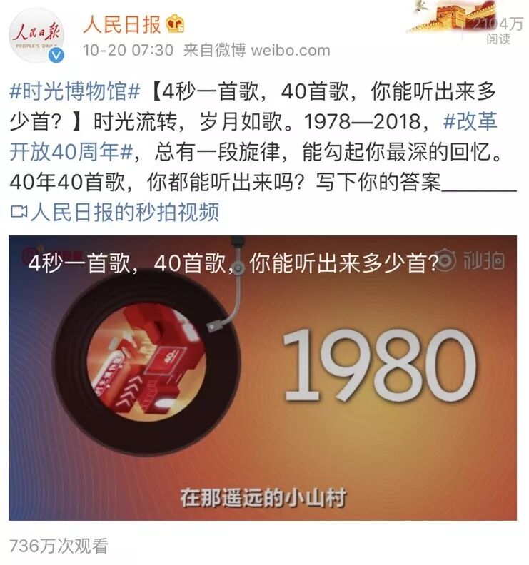 在外部渠道的使用中,人民日报新媒体利用多渠道的放大效应,与网易云音乐开展了“年代音乐秀”专项合作,推出了时光博物馆主题曲、改革开放歌单等音乐产品,借势该渠道的受众优势,以音乐撬动大众40年的记忆。